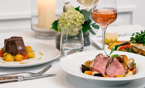 Ob drinnen oder draußen, Food Lover und Genießer kommen im Restaurant und seinen angrenzenden Terrassen voll auf ihre Kosten.